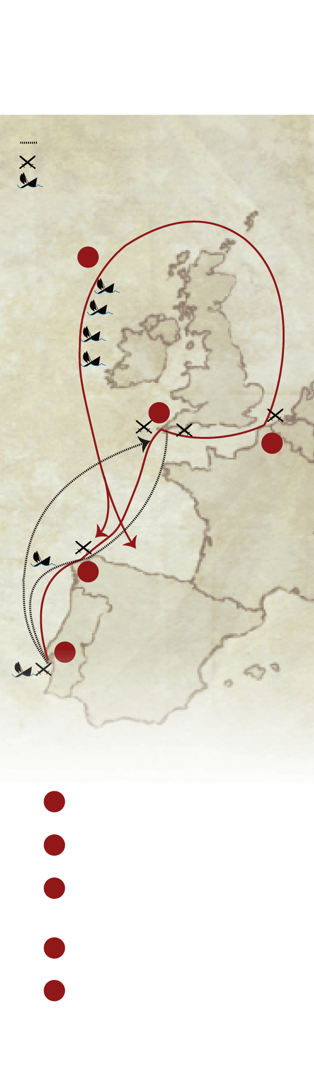 6-22/septiembre. La Gran Armada emprende el regreso a España sufriendo diversos naufragios