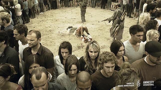 amnistía internacional Con esta imagen la organización Amnistía Internacional hace un llamado a no ser ignorada. Con el lema «Ignóranos, ignora los derechos humanos», muestra a un grupo de personas de espaldas a un hombre que dispara a otro tendido en el suelo.