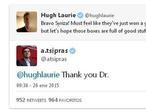 Un dato curioso: el primer tuit de Tsipras tras ganar es al «Doctor House». El actor Hugh Laurie se congratuló de la victoria de Syriza, cuyo líder le dedicó el primer micromensaje como triunfador de los comicios.