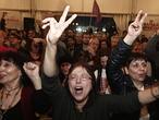 19.02: Nada más conocerse los sondeos a pie de urna, los seguidores de Syriza han celebrado lo que sería una mayoría absoluta.