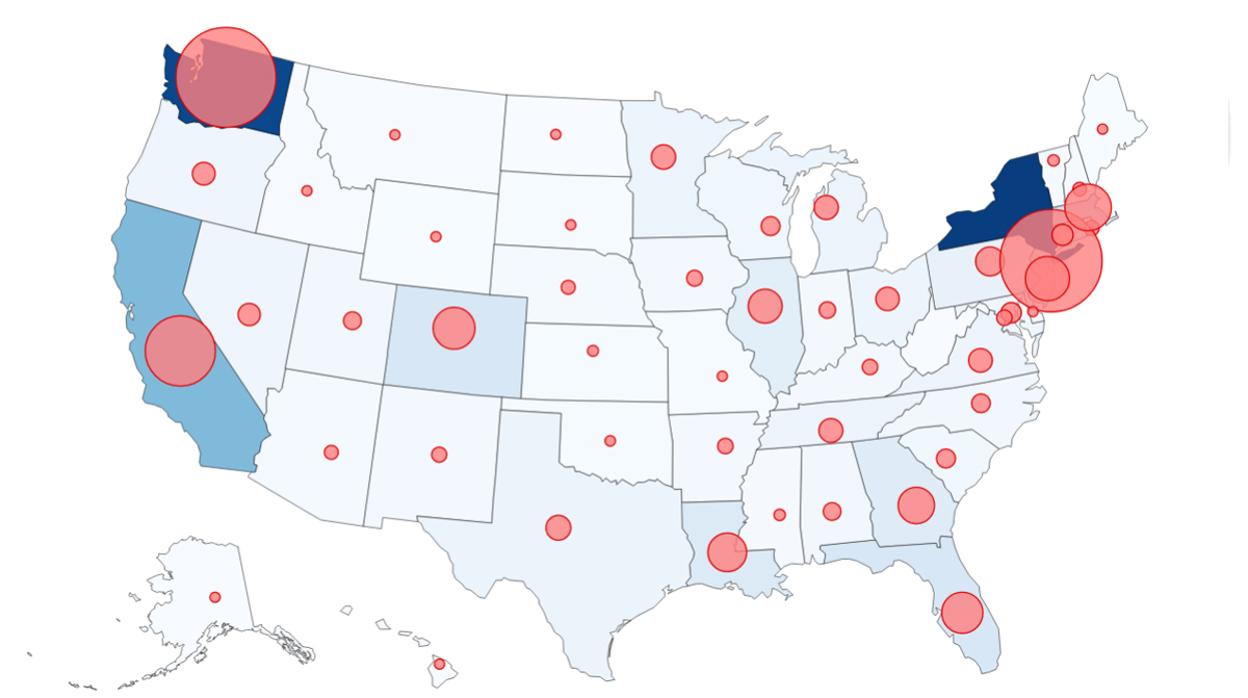 Así está entrando el coronavirus en la primera potencia mundial, estado a estado