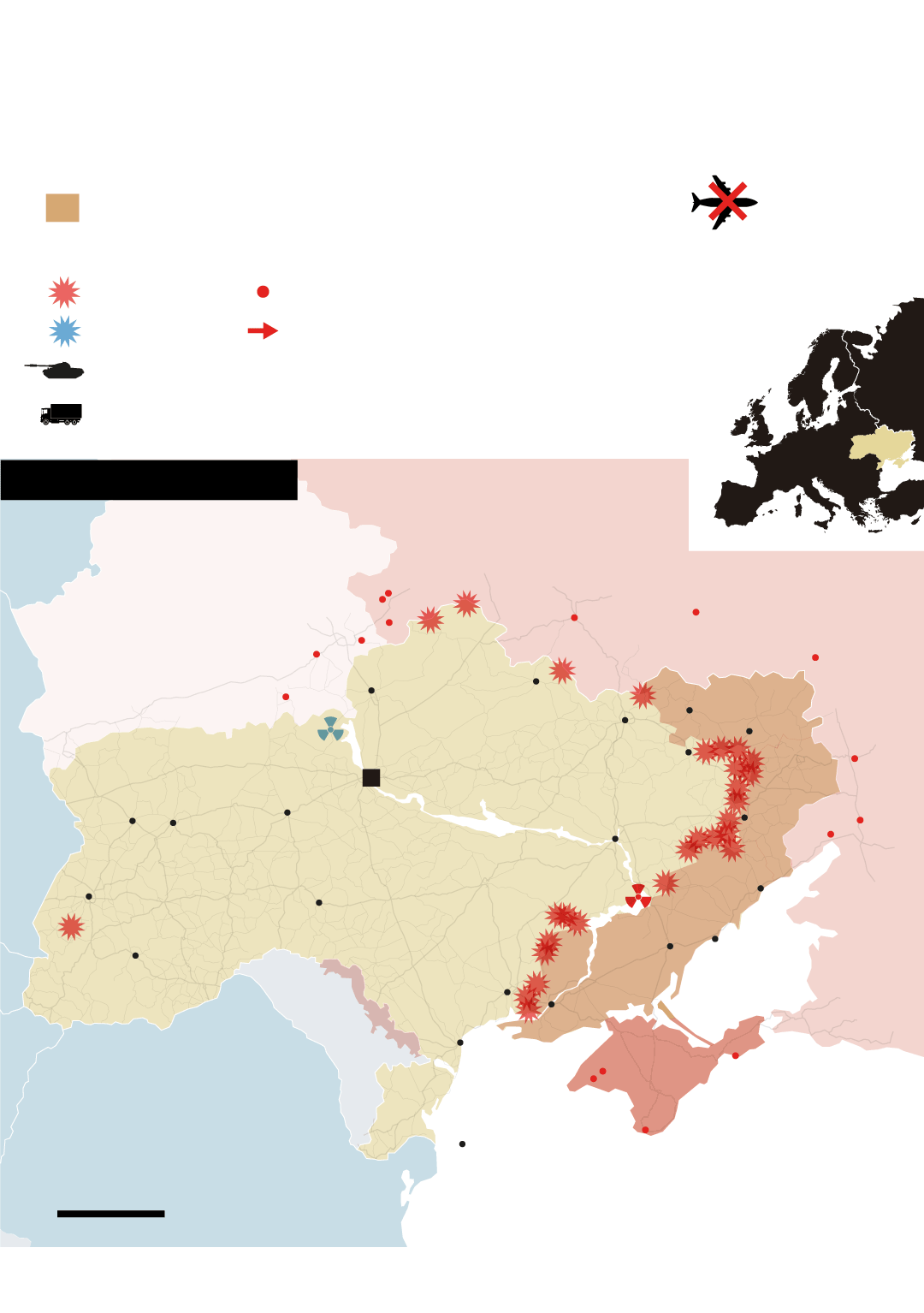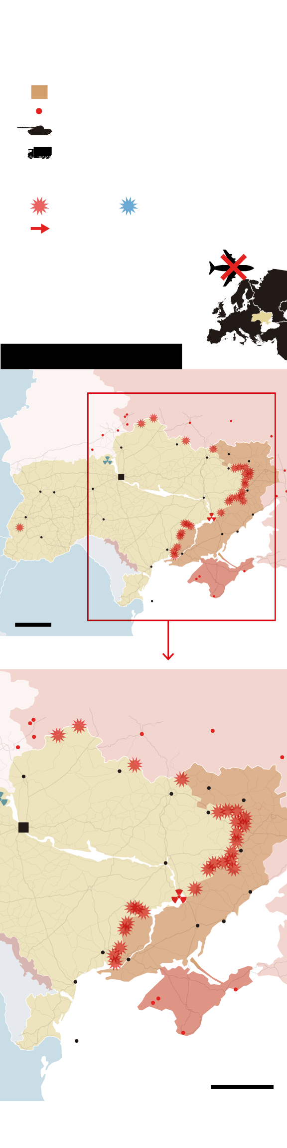 La situación del Donbass no es halagüeña. Volodimir Zelenski admitió ayer que cada día mueren entre 60 y 100 soldados y otros 500 son heridos en sus frentes, donde se libran combates feroces. Severodonetsk, el bastión ucraniano más importante de la provincia de Lugansk, se derrumba ante el implacable empuje ruso: el 70% de la ciudad estaba, según algunas fuentes, bajo manos rusas aunque otras hablaban de una retirada ucraniana que cedería por completo sus calles al enemigo . Su control permitirá asaltar Lisichansk, la otra ciudad de Lugansk que resiste, sometiendo por completo a la provincia y de ahí será fácil arremeter contra el 10% de Donetsk aún en manos ucranianas: ayer el Estado Mayor de Kiev informaba del reforzamiento y reagrupamiento de tropas rusas en Limán, recientemente conquistada, a sólo 10 kilómetros de Slaviansk, una de las grandes ciudades de Donetsk bajo control de Kiev, lo que hace presagiar una ofensiva terrestre. Los rusos estarían empleando helicópteros Alligator además de artillería, morteros y lanzaderas múltiples de misiles.