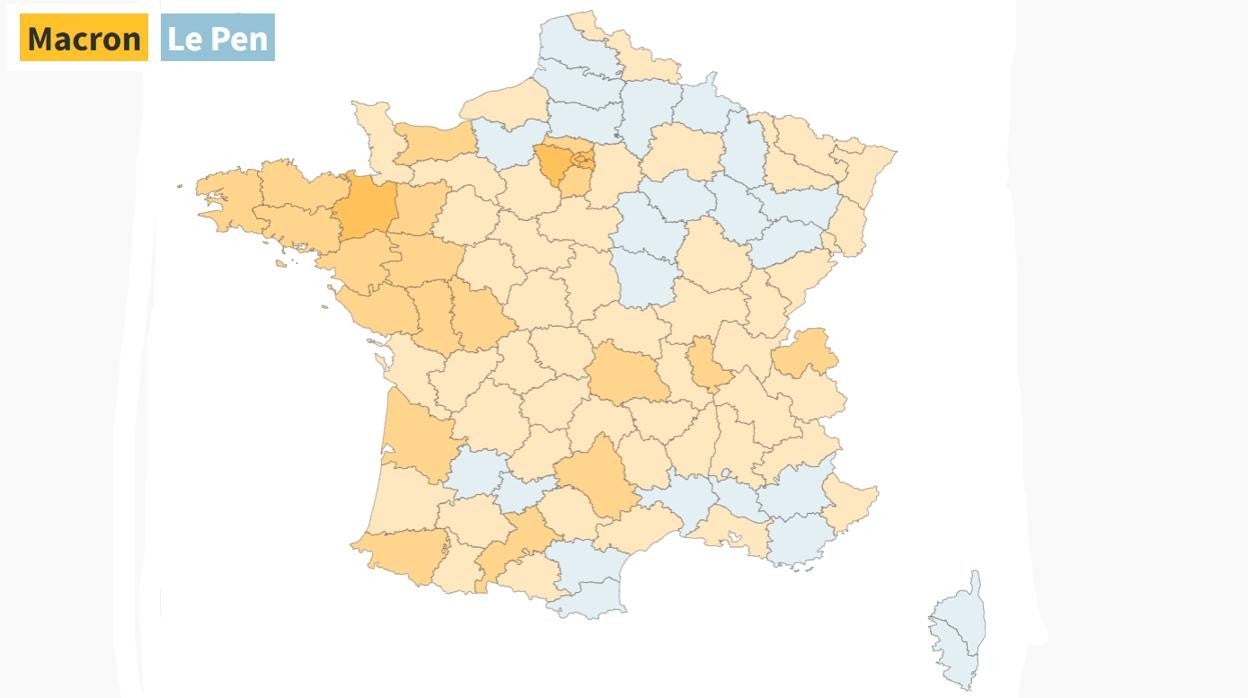 Además de la división de clase y ocupación, existe una franja territorial: grandes metrópolis y regiones del oeste apoyaron a Macron mientras que las antiguas cuencas mineras del norte y el tradicional bastión de Le Pen padre en el sureste, además de los territorios de ultramar, estas últimas con una renta per capita en general claramente inferior a la Francia metropolitana, han votado mayoritariamente a la candidata ultra.
