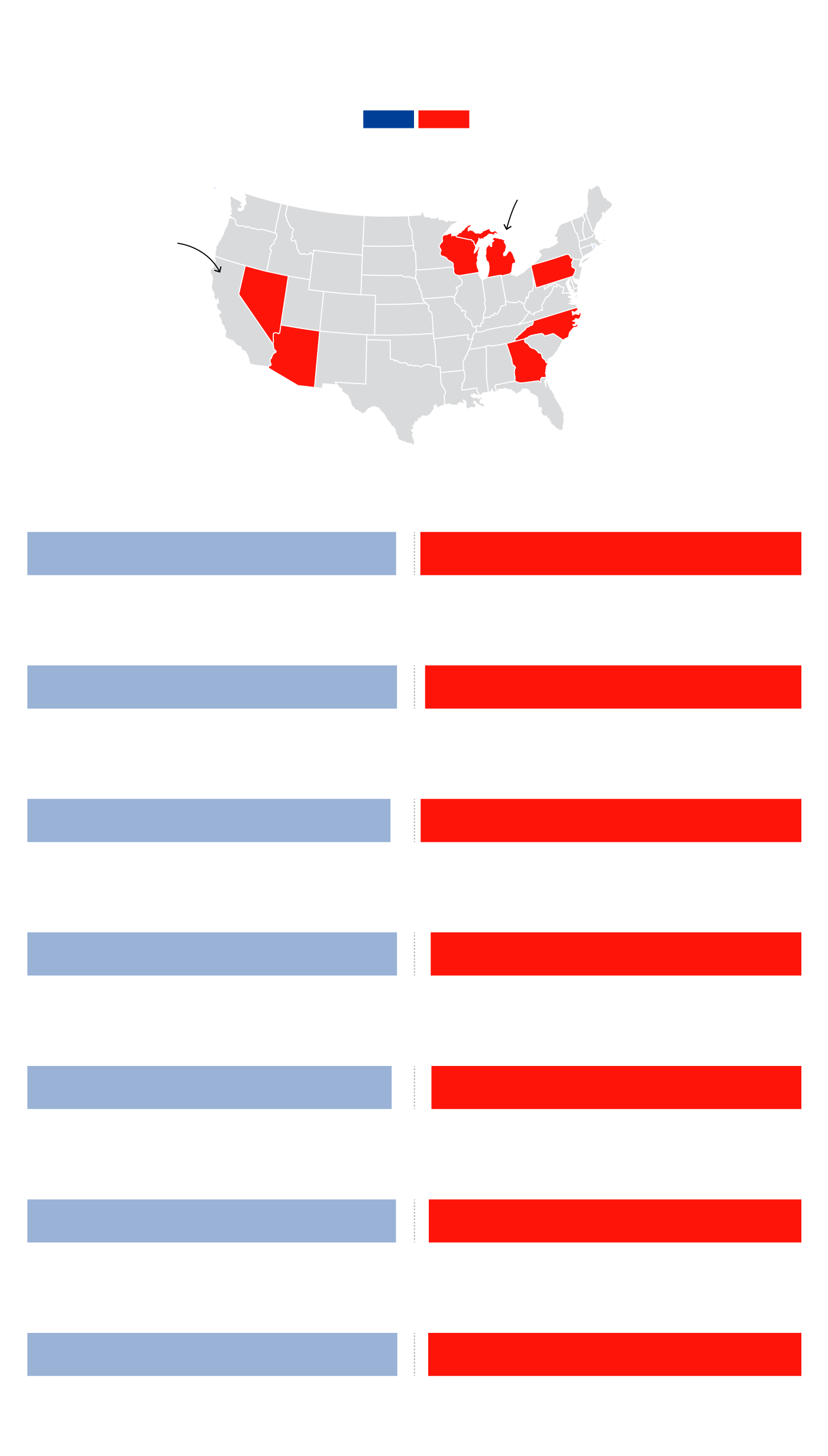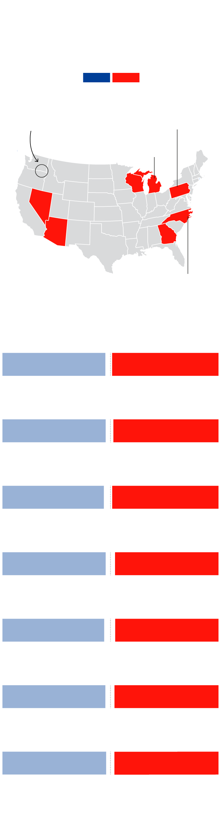 Iniciar sesiónCon una igualdad prácticamente total en las encuestas a nivel nacional, la batalla entre Kamala Harris y Donald Trump para las elecciones del próximo 5 de noviembre se centra en los estados clave donde el resultado no está aún claro. Arizona, Carolina del ... Norte, Georgia, Míchigan, Nevada, Pensilvania y Wisconsin tienen la llave de la Casa Blanca y, aunque el expresidente republicano lleva una ligera ventaja en todos ellos, las diferencias se han estrechado en dos de los más importantes, Míchigan y Pensilvania.