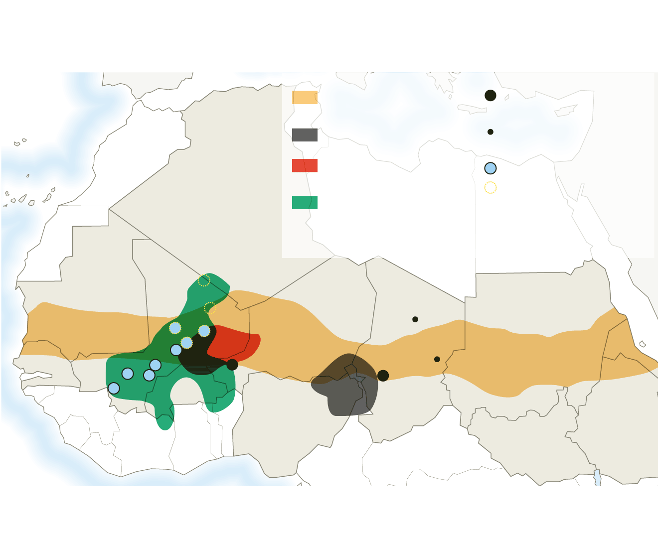 Ríos de sangre derramada en los desérticos territorios de una docena de frágiles estados amenazados por la pobreza, crisis crónicas y un islamismo yihadista que tiene muchos orígenes y la misma vocación criminal, colaborando directa o indirectamente con las mafias especializadas en el tráfico de seres humanos que aspiran a colarse en las porosas fronteras de todos los países del Magreb, primera etapa para su posterior migración hacia España, Francia e Italia.