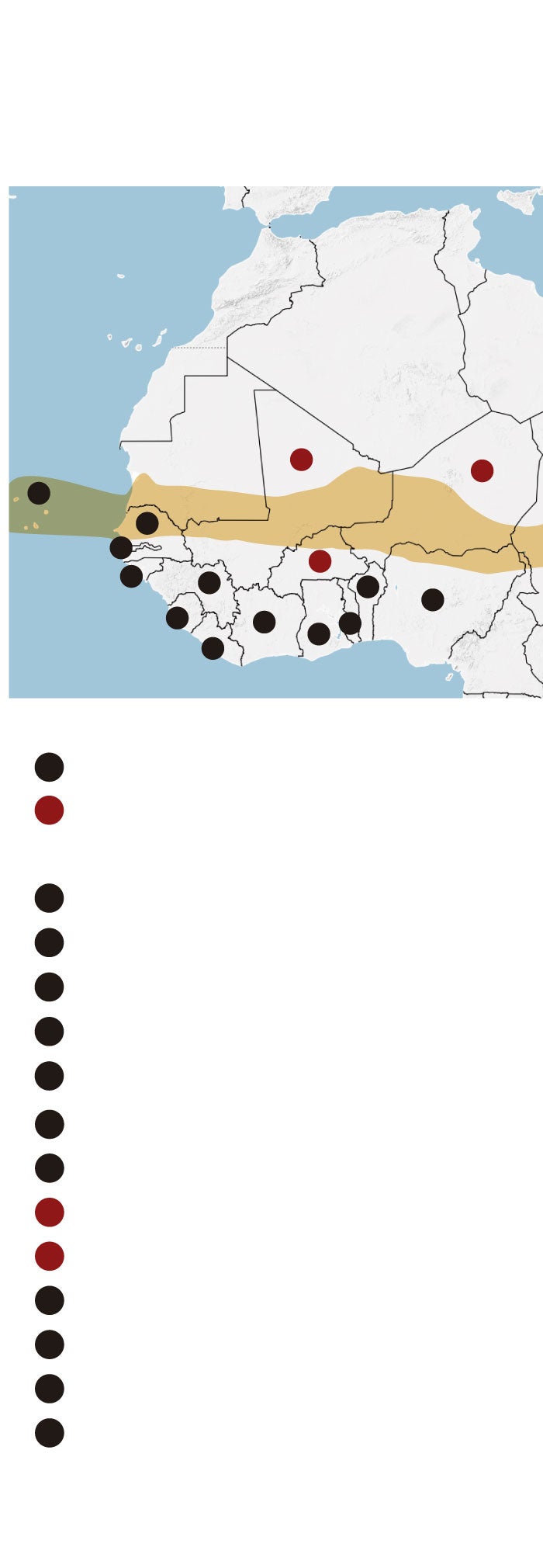 Los miembros de la AES, con una población total de 72 millones de habitantes –casi una quinta parte del bloque–, se sitúan en la región de Sahel, una larga franja de tierra semiárida al sur del desierto del Sahara que se extiende desde Senegal hasta Eritrea. Un territorio que ha experimentado un aumento significativo de la inseguridad desde 2015 tanto por la presencia de la rama de Al Qaeda en el Sahel, el Grupo de Apoyo al Islam y los Musulmanes (JNIM), como otros grupos yihadistas relacionados con el Estado Islámico, lo que ha provocado una oleada de desplazados internos y refugiados hacia otros países de la región.