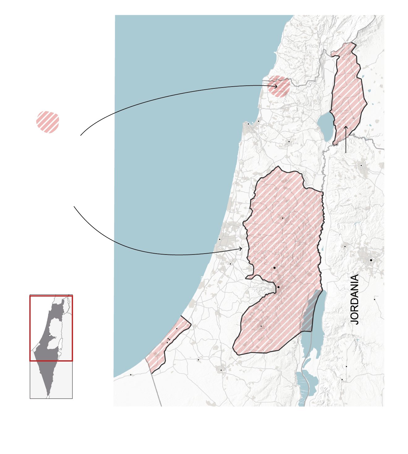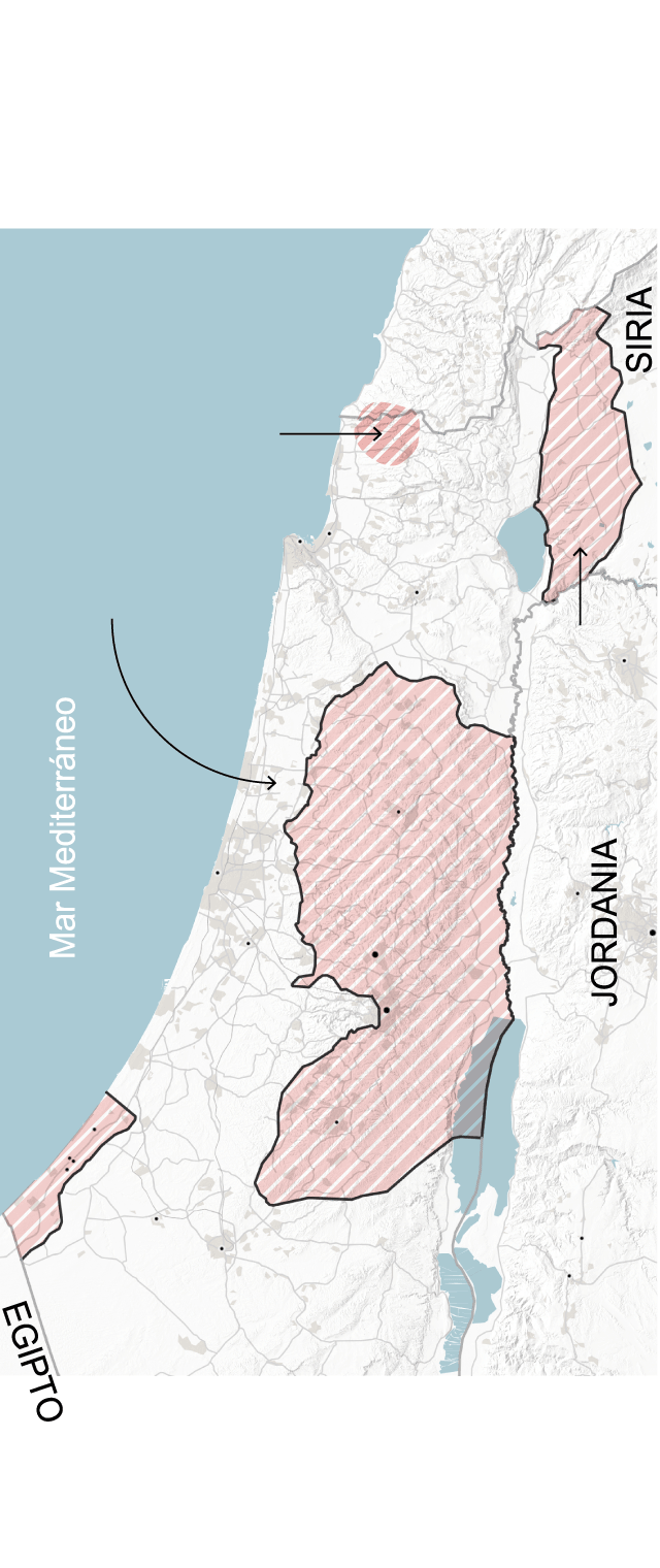 Cisjordania y la Franja de Gaza conforman los territorios palestinos que fueron separados del territorio histórico de Palestina –el área al oeste del río Jordán– que fue mandato británico desde la década de 1920 hasta la creación del Israel moderno en 1948.