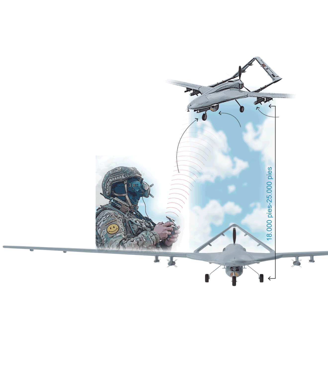 La conexión entre el soldado operador y el dron que pilota, es continua. Si es interrumpida por el enemigo, el software de IA de la