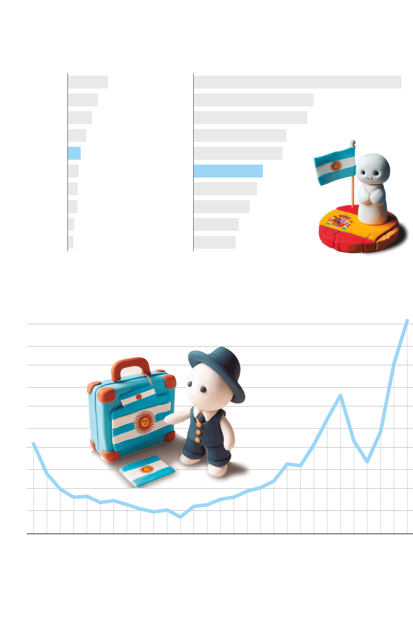 De la Casa Rosada a España. Alberto Fernández, que a partir de la próxima semana será ya expresidente de Argentina, tiene sobre la mesa varias ofertas de universidades españolas para volver a dar clase. Tras la victoria electoral de Javier Milei, no le parece ... mala idea poner tierra de por medio, contó en una entrevista en 'El País'. Se sumaría así a la larga lista de compatriotas que, sobre todo en los dos últimos años, han decidido iniciar una nueva vida a este lado del Atlántico. Sólo en el primer semestre de 2023, según datos del Instituto Nacional de Estadística (INE), se mudaron a España 29.500 argentinos, el récord de cualquier semestre de la serie histórica. En los dos últimos años, el ritmo de llegadas se ha multiplicado por cinco respecto a la década pasada: desde 2021, hemos recibido a unos 100.000 inmigrantes del país sudamericano, mientras que en la década pasada la media era de 10.000 personas por año. Según los últimos datos del padrón, a 1 de enero de 2022 vivían en España 328.333 argentinos, más que en la provincia de Tierra del Fuego. Argentina es la sexta comunidad extranjera más numerosa, solo superada por Marruecos, Colombia, Rumanía, Venezuela y Ecuador, y por delante de Reino Unido, Perú, Francia y China.