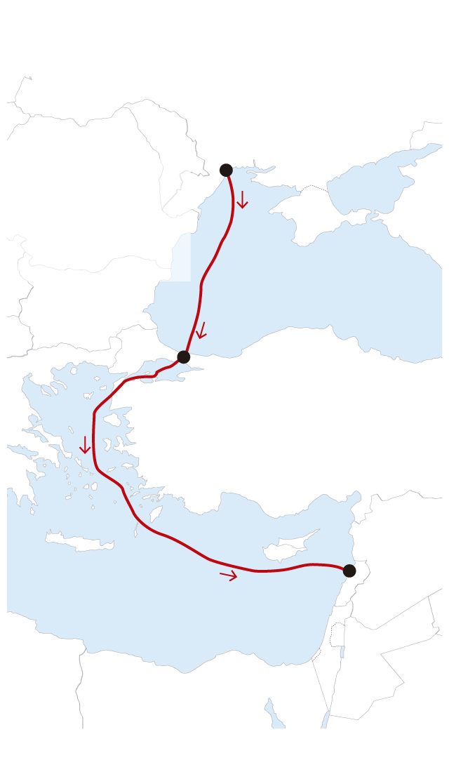 El barco que transporte el vital alimento es el Razoni con bandera de Sierra Leona. Su destino es el puerto de Tripoli, en el norte del Líbano. Lleva a bordo 26.000 toneladas de maíz ucraniano. Según Kubrákov, en Odessa hay otro 16 buques que llevan inmovilizados desde que Rusia comenzó la invasión de Ucrania, de los que 10 están ya listos para zarpar en breve con cereales.