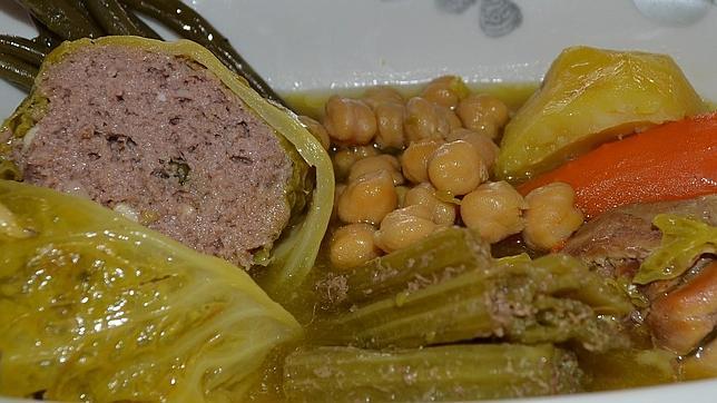 Unas de sus protagonistas son las «pelotas», hechas con carne picada de ternera y cerdo, higadito de pollo, pan deshecho, piñones, perejil fresco, sal, pimienta y canela y sal.