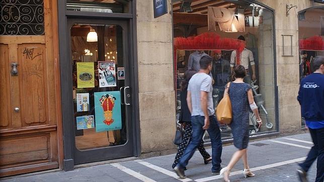 No sólo las tiendas del Casco Antiguo de la ciudad sino de todos los barrios de Pamplona colocan en sus escaparates el cartel de los Sanfermines para recordar a los clientes y viandantes que ya falta menos para las fiestas de San Fermín.