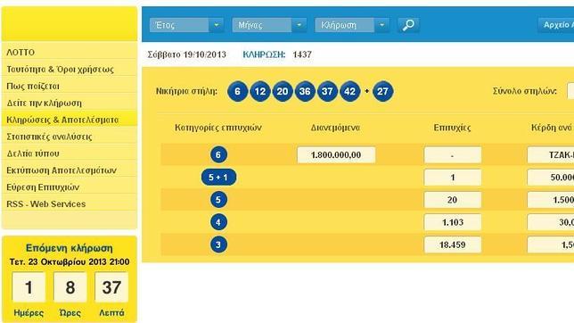 La lotería más antigua y conocida en Grecia es la Lotería Nacional Estatal, ideada en 1929 y que cuenta con dos tipologías de sorteo, el popular (Laikó Lajío), muy similar a la lotería española y cuyo gran premio puede alcanzar los 2.500.000 millones de euros y el nacional (Kratikó lajío), más simple que el anterior y cuyo gran premio es de 300.000 euros, aunque se han celebrado algunos sorteos extra por importes de hasta 1.700.000 euros.