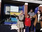 11.41: La dueña de la administración de la Plaza del Salvador 6 de Leganés en la que ha caído el premio Gordo asegura que tenía la intuición de que algún premio grande iba a caer. María Luisa Ron asegura que «le tiemblan las piernas. Ya no me muero sin dar el Gordo». La vendedora, Celia Martín, está «encantada». En la foto, la administración agraciada. FOTO: JOSÉ RAMÓN LADRA