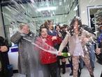 Los afortunados de La Rinconada celebran su cuarto premio con champán. FOTO: ROCÍO RUZ
