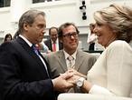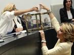El Secretario del Pleno abre el acto de investidura. Comunica que están los 57 concejales en sus escaños . Casualmente, quien será la presidenta de la Mesa de Edad será Manuela Carmena. Desde la tribuna de invitados siguen la sesión, entre otros la alcaldesa saliente, Ana Botella , que ha llegado acompañada por su antecesor, Alberto Ruiz-Gallardón , los también exalcaldes José María Álvarez del Manzano y Juan Barranco , y la delegada del Gobierno en Madrid, Concepción Dancausa . Igualmente están en la tribuna el líder de Podemos, Pablo Iglesias , y el candidato de IU a la Presidencia del Gobierno, Alberto Garzón .
