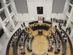 Mientras tanto, la espectación es máxima en la tribuna de invitados y la sala de prensa, que están a rebosar de periodistas y personalidades de la política.