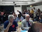 Una sala llena hasta la bandera de periodistas atienden en la rueda de prensa posterior a la primera Junta de Gobierno presidida por la alcaldesa de la capital, Manuela Carmena. La convocatoria oficial citaba a los medios de comunicación a las 14 horas, aunque media hora después la prensa esperaba a que salieran los representantes de Ahora Madrid ante una gran expectación mediática. Ha sido la alcaldesa de Madrid la que preside la rueda de prensa, la primera como regidora de la capital. Durante su discurso de investidura, ha avanzado que la primera decisión que tomarán es que ningún niño se quede sin comida cuando deje de ir al colegio en vacaciones.