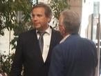 José Ignacio Echeverría , expresidente de la Asamblea de Madrid, bromea en la bromea en la puerta con los miembros de seguridad de la Cámara y Juan Van Halen : «Vigílame al expresidente que hoy viene a liarla».
