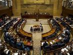Todos los diputados del PP en pie aplauden a la candidata de su partido. Mientras ella recibe los abrazos de sus compañeros, el resto de grupos parlamentarios van saliendo de la Asamblea de Madrid.
