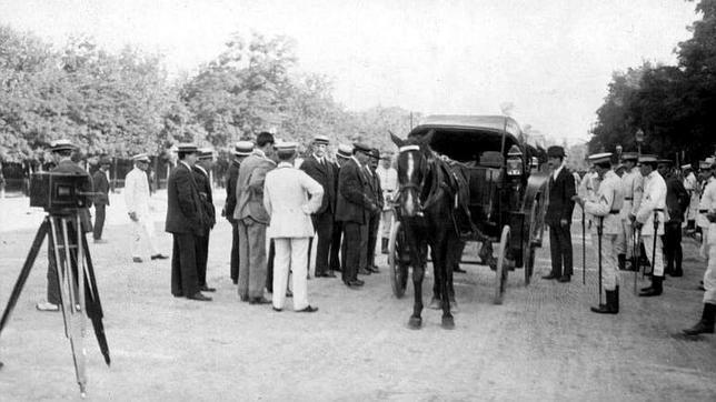 abc Los nuevos coches de alquiler en el paseo de la Castellana llegaban en agosto de 1918, calesas tiradas por un caballo.