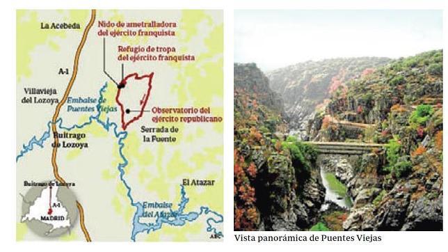 ABC Esta excursión de dos horas y cuarto (unos 8 kilómetros) recorre una ruta acondicionada por la Dirección General de Patrimonio de la Comunidad de Madrid para incluir en el plan de yacimientos visitables la zona fortificada del denominado Frente del Agua, que tuvo una gran importancia estratégica, dado que su control permitía el acceso al abastecimiento de agua de los dos principales embalses que surtían a la capital: Puentes Viejas y El Villar. El itinerario recorre varios vestigios de la batalla como son los nidos de ametralladoras.