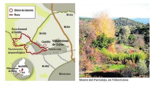 ABC Esta senda se puede recorrer en bicicleta o a pie (en este caso, se tarda unas 4 horas ya que son más de 12 kilómetros de recorrido). El punto de inicio y final de la ruta es el Castillo de Villaviciosa, y se sale del casco urbano por el extremo suroeste de Villaviciosa de Odón, cruzando un puente sobre la carretera M- 501 en dirección hacia la entrada del Monte El Parralejo. Habitan en los alrededores especies como azor, milano real y negro, cárabo o búho chico, así como jabalíes y ginetas.