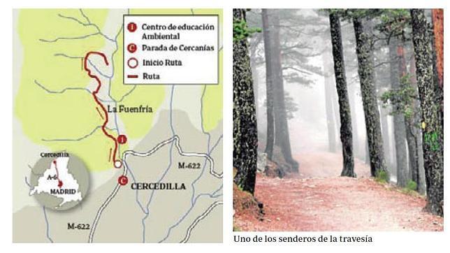 ABC Este recorrido de una hora y media (menos de cuatro kilómetros) supone un agradable paseo que permite el acceso alternativo al valle de la Fuenfría desde la estación de ferrocarriles de Cercedilla, o viceversa, sin tener que utilizar la carretera asfaltada. Un itinerario interesante (siempre señalizado con balizas en forma de círculos de pintura azules), además, por la vegetación y las especies botánicas que vamos a encontrar a nuestro paso (pino silvestre, rebollo, fresno, sauce, jara estepa...).