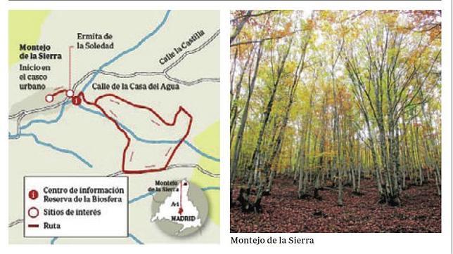ABC Esta excursión de una hora y media (unos 6 kilómetros) sale y termina en el mismo punto, la Ermita de la Soledad en la localidad de Montejo de la Sierra. Discurre a través de antiguos prados de siega y llega a la ermita de Nuestra Señora de Nazaret, partiendo desde la Ermita de la Soledad. El camino atraviesa varios arroyos y prados de siega aterrazados, hasta llegar a una loma desde la que se ve la ermita Nuestra Señora de Nazaret, lugar donde se celebra la Romería de Montejo de la Sierra el último domingo de mayo. Desde este punto se puede disfrutar de una bonita panorámica de la sierra y del pueblo.