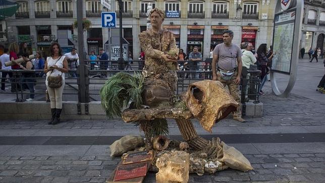 En Madrid se dedican a este arte dos madrileños, chilenos, un inglés, un colombiano y un cubano. En la imagen, los «Gemelos petrificados de Pompeya», una escultura que se ha ido renovando. Aunque no lo crean, el que se ve en la imagen es un maniquí. El autor había parado a hacer un descanso.