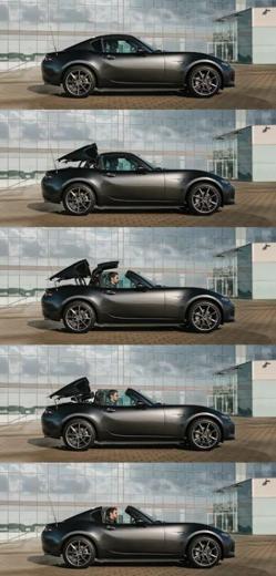 «Ha hecho falta un trabajo muy complejo para poder meter el techo en el coche sin perder el concepto del MX-5», explica Mashashi Nakayama, jefe de diseño. Incapaces de integrar un techo rígido totalmente retráctil sin añadir un peso significativo o alargar el espacio entre los pasos de rueda, los ingenieros de Mazda tuvieron que concebir una caída suave hasta la zaga que pudiera elevarse para acoger el primer tercio de la cubierta de forma ágil y rápida.