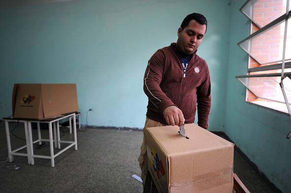 Un venezolano vota en el referendum sobre la perpetuidad de Chávez.