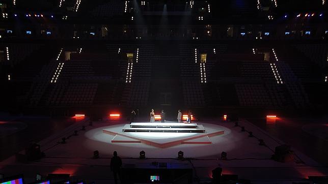 Una voz profunda pero femenina se elevaba por encima del eco de unas gradas vacías. "Es la cantante de un grupo que hará un espectáculo mañana durante los partidos", nos cuenta uno de los miembros de la organización que observa los pasos de baile. Las notas, cada vez más encendidas en el tono, activan también los focos que mueven desde la cabina de luces. En árabe y en inglés, el micrófono prueba sus cuerdas vocales, como lo hace la cantante.