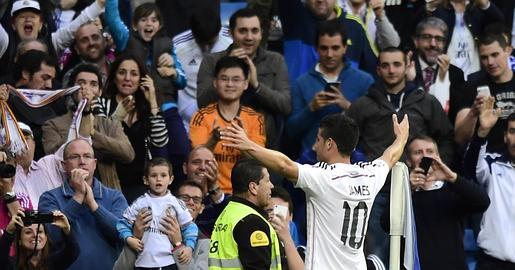 FINAL DE LA PRIMERA MITAD. El gol de James (el número cien el Liga de los blancos) da ventaja al Madrid, pero el tanto del colombiano no puede tapar una mala primera parte de los blancos. 1-0 al descanso, y gracias.