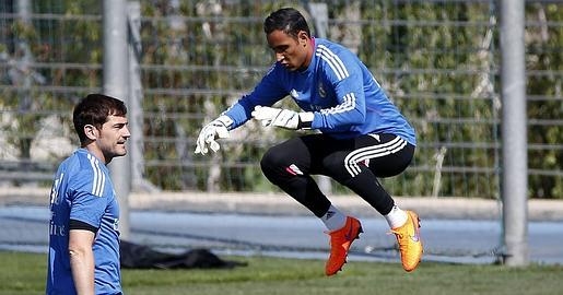 «Navas se merece recibir partidos porque sus entrenamientos son óptimos y su espíritu de trabajo es un ejemplo», manifiesta el máximo responsable del equipo. Será su décimo partido en el Real Madrid. Hasta ahora ha jugado cuatro jornadas de Liga, tres de Copa y dos de Champions. El dilema para «el trece», el creyente en Dios, el hombre que rechaza las supercherías del número que lleva a su espalda, es que tiene 28 años, está curtido y exige ese respeto externo porque no es una joven promesa que pueda que esperar. Su lucha diaria es por ser titular inmediatamente. Cuando comenzó los entrenamientos con el club, el 5 de agosto, solo necesitaba adaptarse a la presión de lo que significa militar en esta entidad. Lo asimiló con rapidez. Es titular en la selección de Costa Rica, ha sido elegido el número uno en un Mundial y sabe digerir la parafernalia mediática, la misma que ahora le deja en segundo plano ante cada capítulo de la telenovela del porvenir de Casillas. La suplencia nunca le hundió. Al revés, Keylor se flagela. Piensa que si no juega es porque debe mejorar. Y trabaja muy duro. Y se cuida con esmero. Ha sido, es, el mejor consejero de Chicharito. Quien le dijo que no se resignara y continuará trabajando con entrega, como hacía él, porque las oportunidades llegarían. Javier Hernández le agradece enormemente ese apoyo. Es su gran amigo. Navas espera ahora una oportunidad similar.