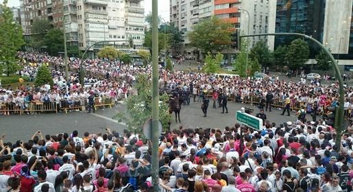 Te dejamos otra imagen del espectacular ambiente que se está viviendo ya en las calles aledañas al Bernabéu.