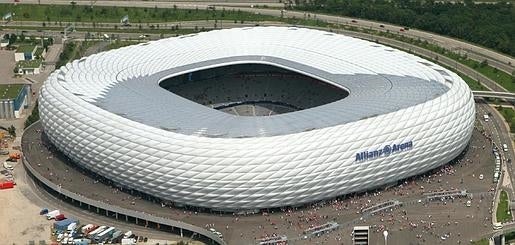 Este es el espectacular aspecto exterior que presenta el Allianz Arena, el escenario que albergará esta noche (20.45 horas) el partidazo entre el Bayern y el Real Madrid.