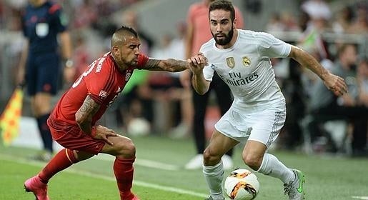 Te dejamos una imagen de Carvajal, muy seguro y firme durante toda la primera parte, en un duelo con Arturo Vidal.