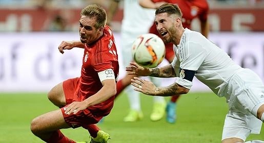 Te dejamos una imagen del partido en la que puedes ver a Ramos en plena lucha con lahm..