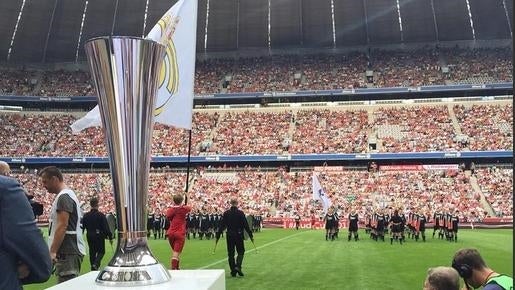 Este es el trofeo que estará esta noche en juego en el duelo entre el Bayern y el Real Madrid, un partido entre dos gigantes que nunca tiene la categoría de amistoso (foto vía @realmadrid).