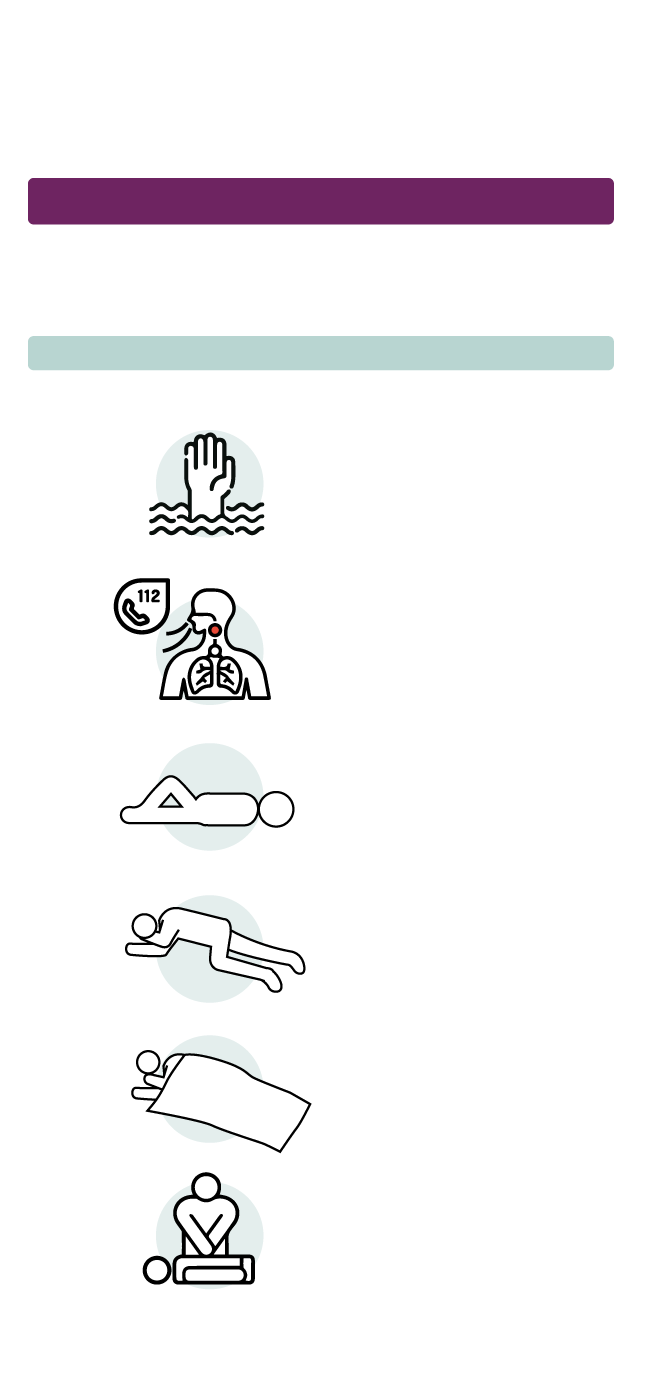 Una vez fuera del agua, examinar que las vías respiratorias estén totalmente libres para que pueda respirar. Avisar inmediatamente al 112
