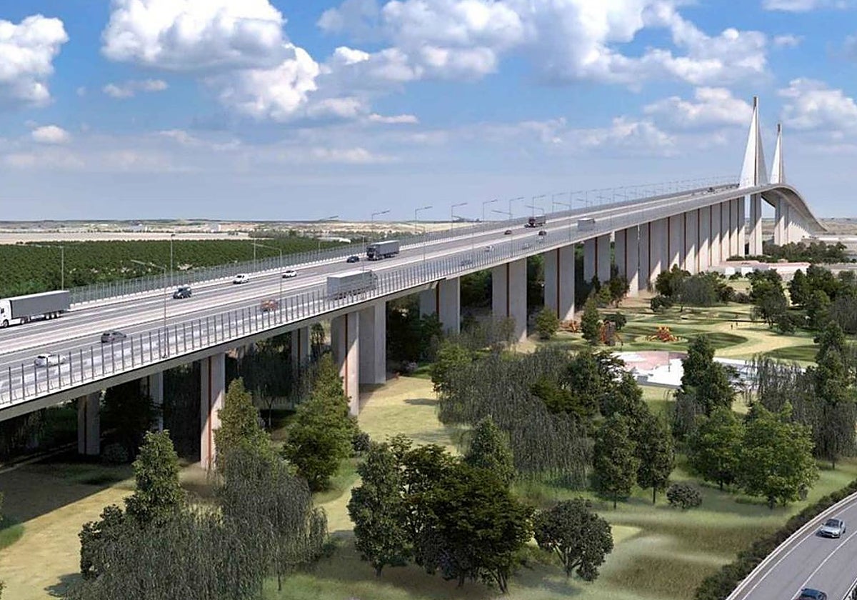 La actuación contempla la construcción de un puente sobre el río Guadalquivir, de aproximadamente 3,5 km de longitud. El tramo atirantado, de 726 m de longitud, tiene un vano central de 366 metros de luz y las pilas fuera del cauce, y para realizar el cálculo que permita el paso de los barcos, se ha licitado recientemente un contrato por 4,5 millones de euros (IVA incluido), a través de Ineco.