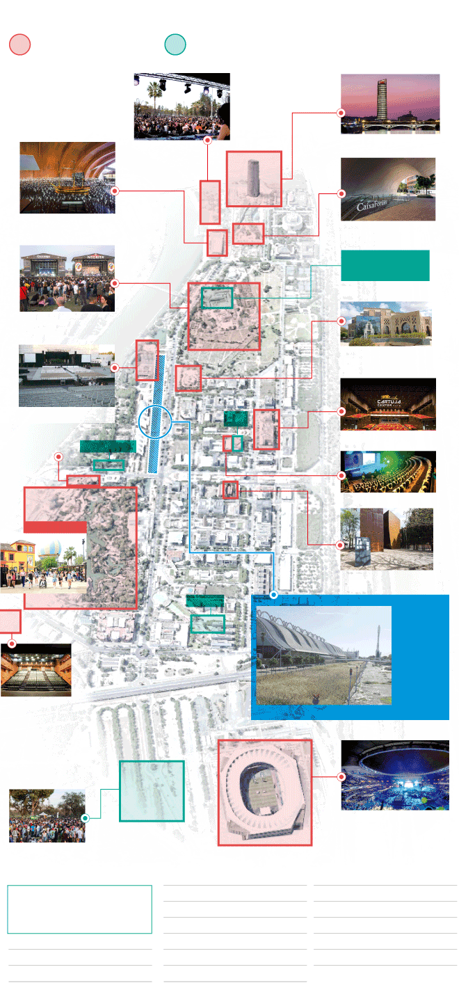 En los últimos años, la isla que en realidad no lo es ni como accidente geográfico, se ha erigido también en una suerte de milla de oro de la cultura en la ciudad. Los espacios escénicos que se han instalado en sus límites tienen cada vez más peso y en otros muchos edificios no específicamente consagrados a esta actividad, en ocasiones la desarrollan. En la actualidad, y como aquel espíritu de entretenimiento que se respiró hace tres décadas, el ciudadano no cruza exclusivamente la Puerta Triana, la Barqueta, el Alamillo o la Pasarela de la Cartuja para resolver un papeleo o acudir a su puesto de trabajo. También lo hace para presenciar una obra de teatro, corear en un concierto o admirar una obra de arte.