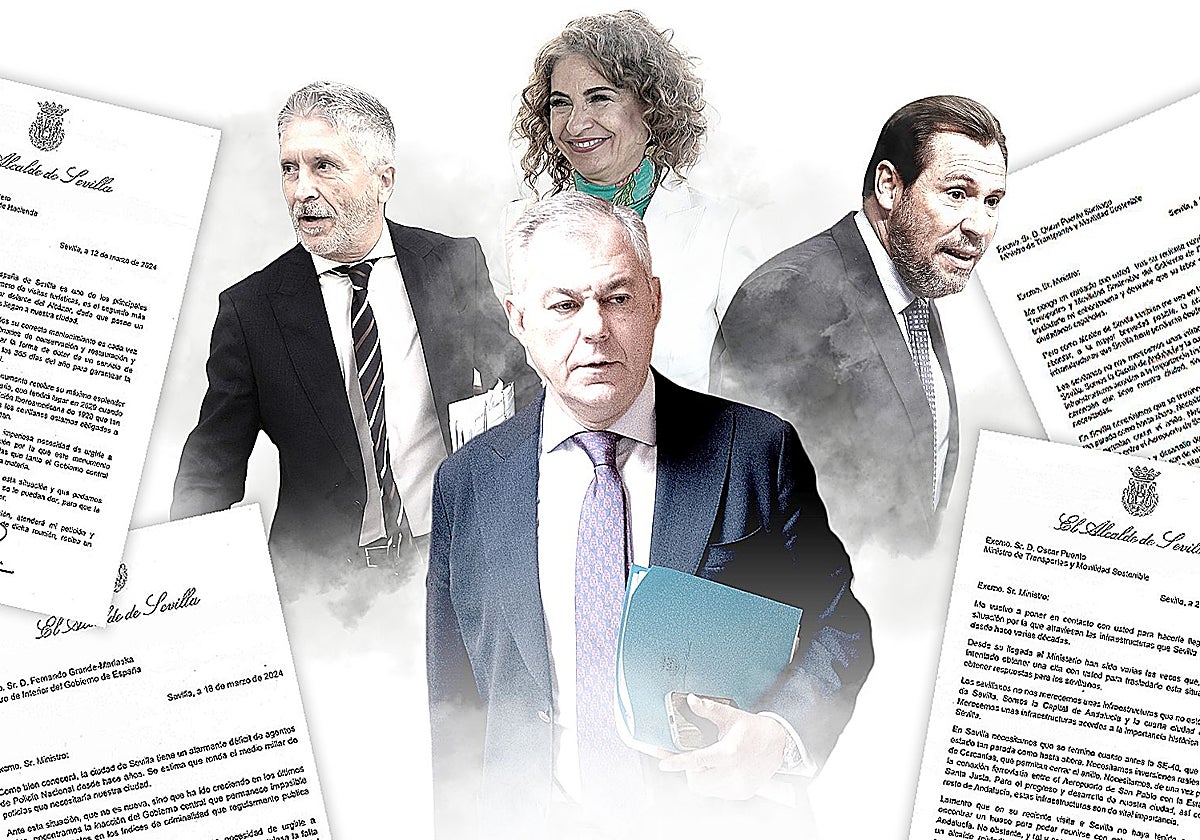 Sanz se ha apoderado desde el minuto uno de su mandato de la estrategia de alzar la bandera de las reivindicaciones, intentando darle la vuelta a esa tendencia negativa que ha condenado a Sevilla a los últimos puestos en el ranking de las transferencias del Estado. Su objetivo ha sido claro: solicitar una reunión con los ministros que están al frente de las áreas más sensibles para los intereses de la ciudad con la idea de negociar cara a cara un cambio de rumbo a favor de los sevillanos. Un reto que ha acabado por convertirse en un imposible, topándose con la negativa del Ejecutivo central e incluso con la falta de respuesta a estas solicitudes. Lo ha hecho públicamente y de viva voz, también aprovechando las visitas de los miembros del Gobierno a la capital hispalense, y hasta por escrito, remitiendo una decena de cartas que han acabado guardadas en el cajón de los ministerios.