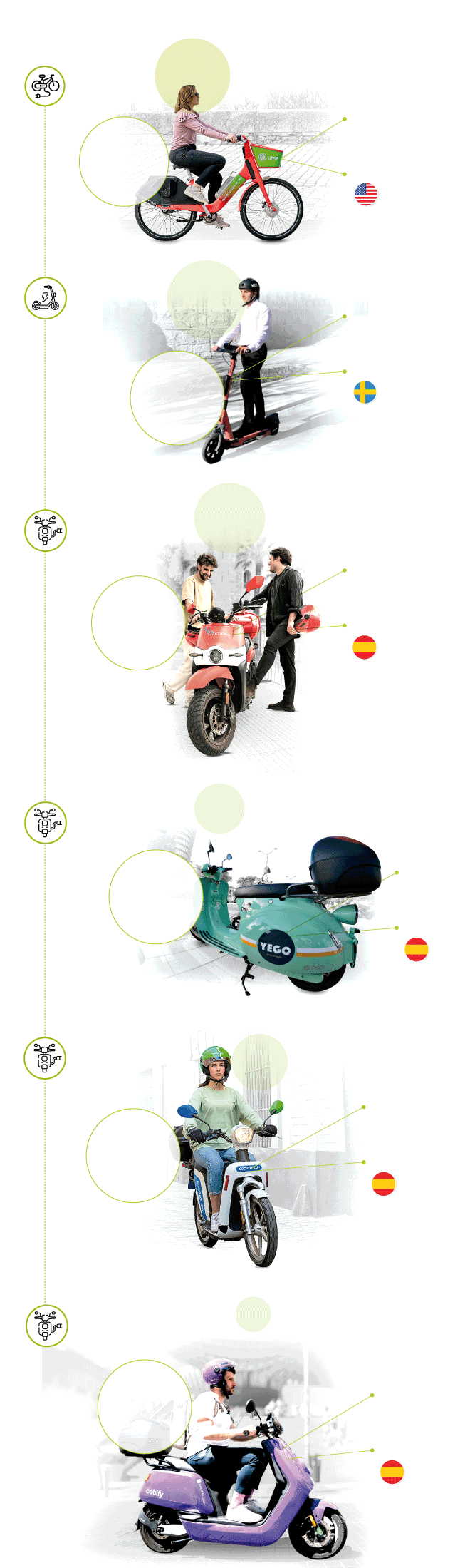 Por su parte, la empresa de motos eléctricas Yego cerró el año 2023 con más de 136.000 usuarios en Sevilla que realizaron más de 400.000 trayectos. La media de uso de estas motos, según la propia empresa barcelonesa, «fue superior a 3 kilómetros por trayecto y la duración media del viaje ascendió a 11 minutos. De hecho, el alto uso de los vehículos de Yego se reflejó en la alta rotación entre los usuarios: cada vehículo fue utilizado una media de más de 4 veces al día». Fueron seis emprendedores franceses, afincados algunos de ellos en Cataluña, los que crearon la compañía. Empezaron en Barcelona con tres motos, y ahora se han extendido a varios puntos de España y Francia.