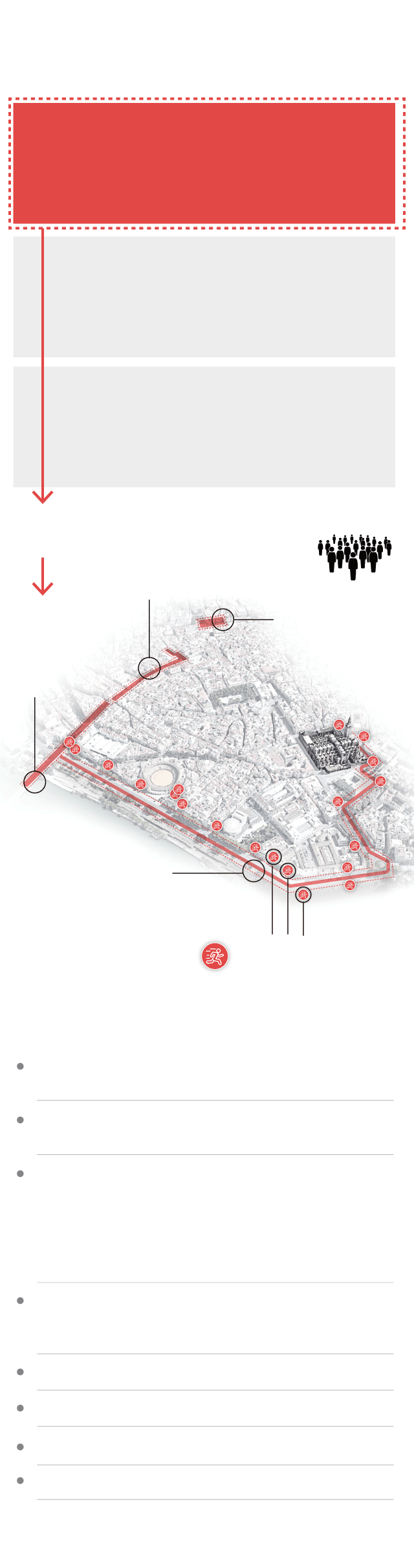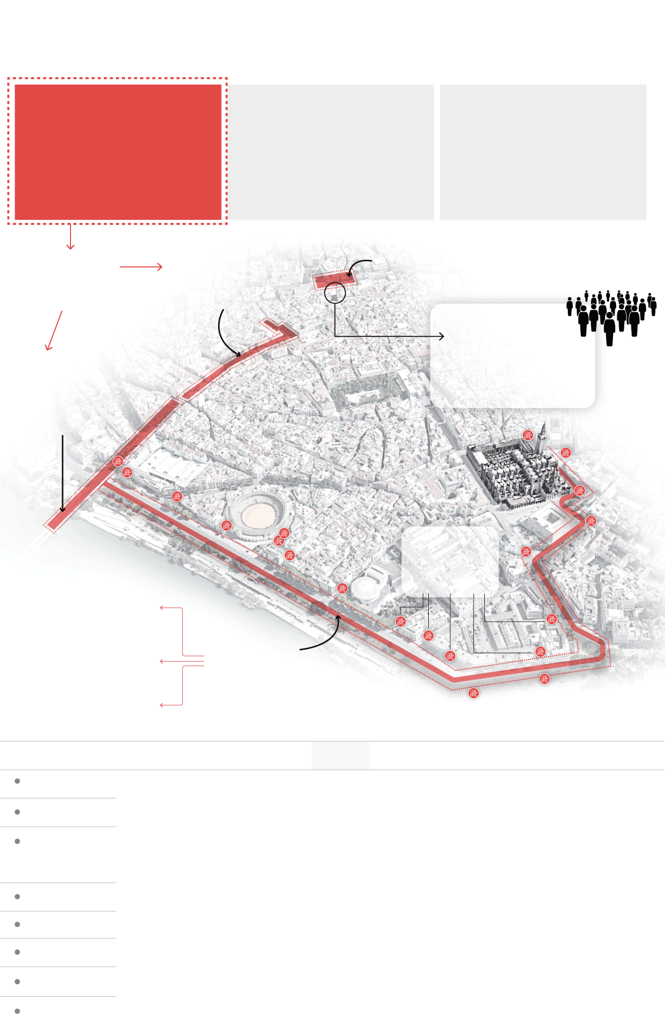 Áreas de concentraciones de personas en torno a los templos y a determinadas zonas de los recorridos para facilitar
