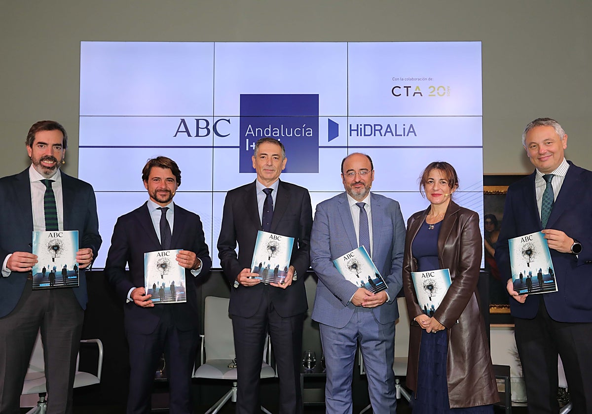 Este miércoles se ha celebrado en La Galería la presentación del especial 'Andalucía I + D + i'. Un evento organizado por ABC de Sevilla, patrocinado por Hidralia y con la colaboración de CTA. El acto ha contado con Ramiro Angulo, secretario general de Agua de la Consejería de Agricultura, Pesca, Agua y Desarrollo Rural de la Junta de Andalucía; Marcos Martín, consejero delegado de Hidralia y Beltrán Pérez, presidente de Corporación Tecnológica de Andalucía (CTA).