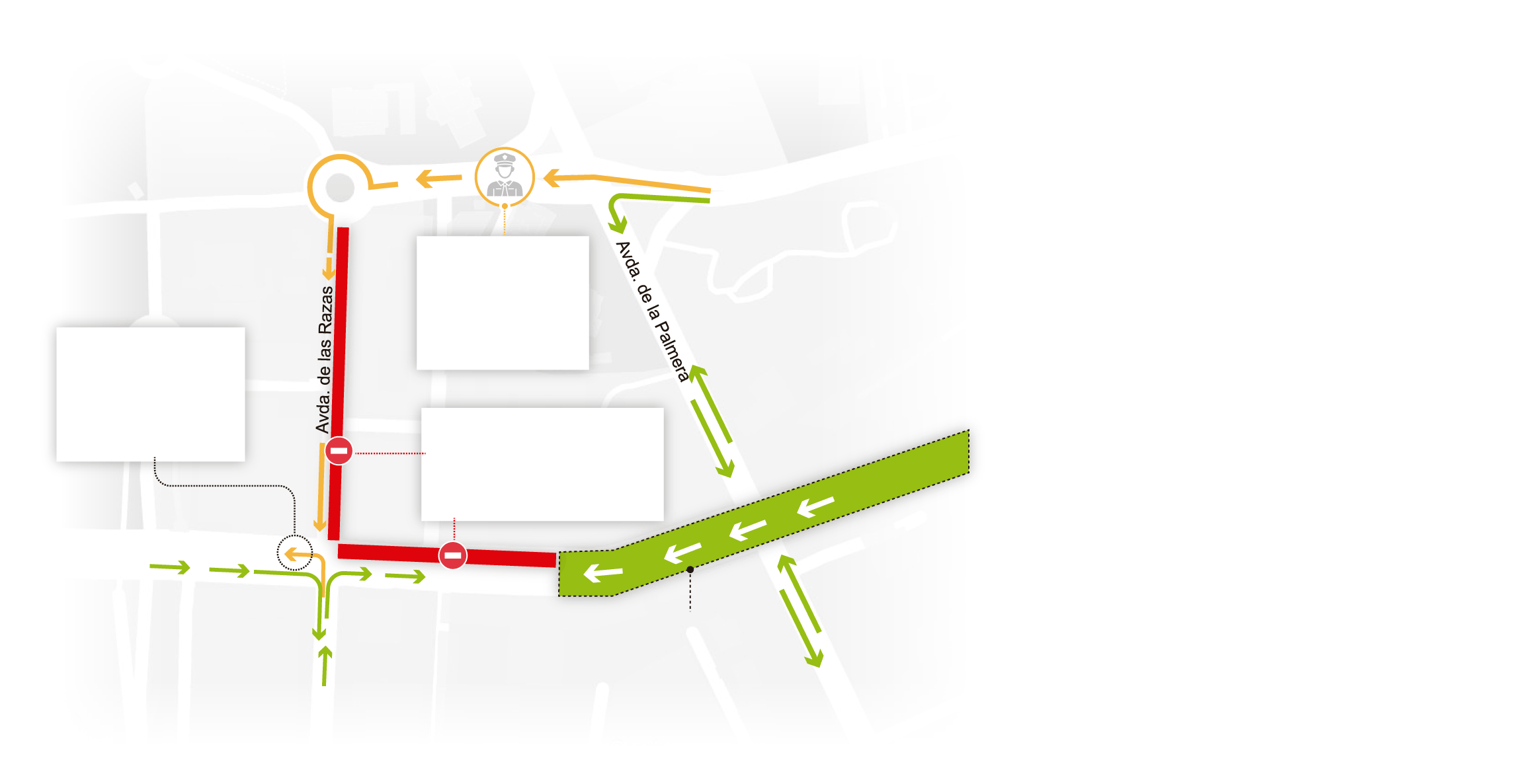 En concreto, desde las 16.00 horas del próximo jueves 20 de abril hasta las 8:00 horas del domingo 30 de abril, los accesos a la barriada de Tablada a través de Alfonso de Orleáns y Borbón y García Morato y Barberán y Collar desde la Avenida Juan Pablo II y por la Avenida de García Morato desde la Carretera de la Esclusa quedarán totalmente cortados. Los residentes y acreditados de esta zona podrán acceder a través del punto de control situado en la Carretera de la Esclusa, a la altura de la estación de servicio CEPSA. Los taxis y vehículos de alquiler con conductor podrán acceder siempre que transporten a viajeros con destinos a las calles interiores o que acrediten un servicio concertado en el interior de la barriada, aunque deberán abandonarla inmediatamente después de prestar el servicio. Los camiones con destino a las instalaciones portuarias ubicadas en el Polígono de Tablada también podrán acceder, pero con limitaciones en el tonelaje y en sus horarios.