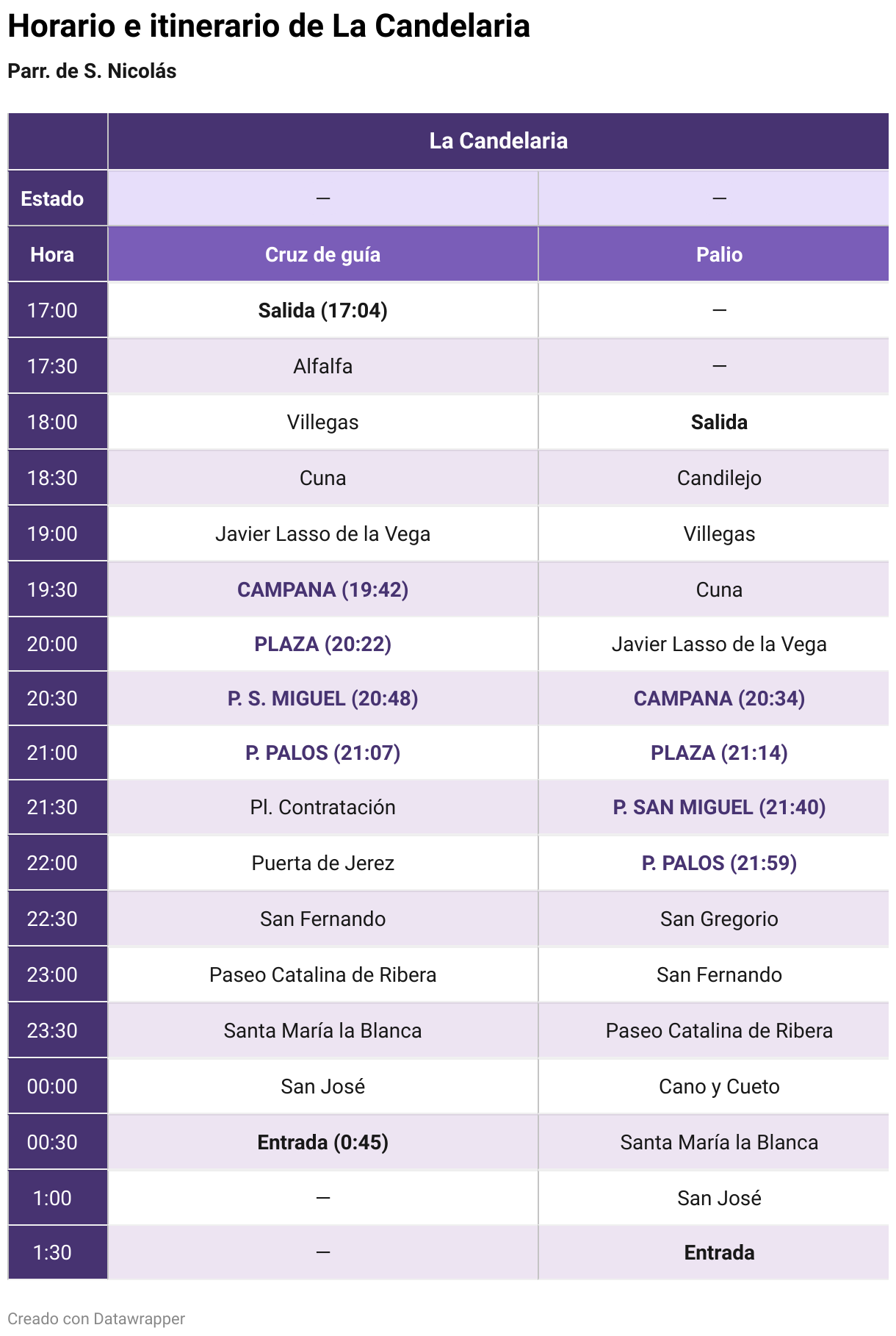 La cofradía de la Candelaria tiene más de un siglo. Su fundación se produjo en San Nicolás por un grupo de fieles en torno a Pepe 'El Planeta', que saldrían el Martes Santo de los años 20 con un Nazareno de una ... extinta hermandad bajo la advocación de la Salud y una Virgen bajo uno de los palios más singulares de la Semana Santa. El centenario fundacional se celebró el pasado 2024 con una exposición con el patrimonio que atesora la corporación.