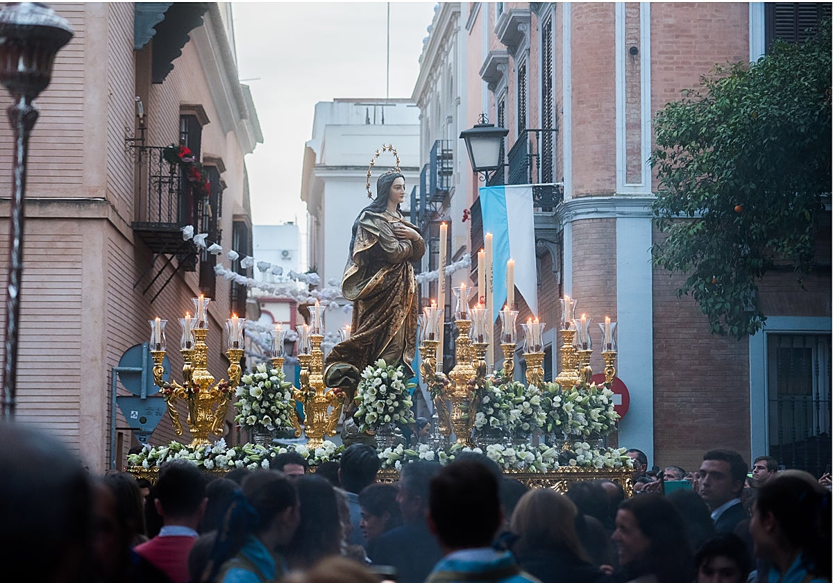 El recorrido de la Inmaculada incluyó visitas a lugares emblemáticos y cargados de significado para la comunidad. La Hermandad de la Vera Cruz, con la que mantiene una estrecha unión desde hace décadas, la recibió con especial solemnidad. La procesión también se detuvo en la Basílica del Gran Poder, destacando la conexión entre ambas instituciones a través de la figura de Spínola. Además, recorrió la Parroquia de San Lorenzo y San Vicente, así como la capilla de la Virgen de las Aguas, que lucía radiante al estar la imagen de culto. Estos encuentros reforzaron los lazos entre las distintas devociones del barrio y dieron aún más relevancia al acontecimiento.